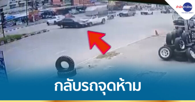 รถเก๋งกลับรถในจุดห้ามกลับ กระบะพุ่งชนเต็มแรง พลิกคว่ำไถลไปชนอีก 2 คัน บาดเจ็บ 5 ราย เหตุเกิดบริเวณ ต.อ้อมน้อย อ.กระทุ่มแบน จ.สมุทรสาคร