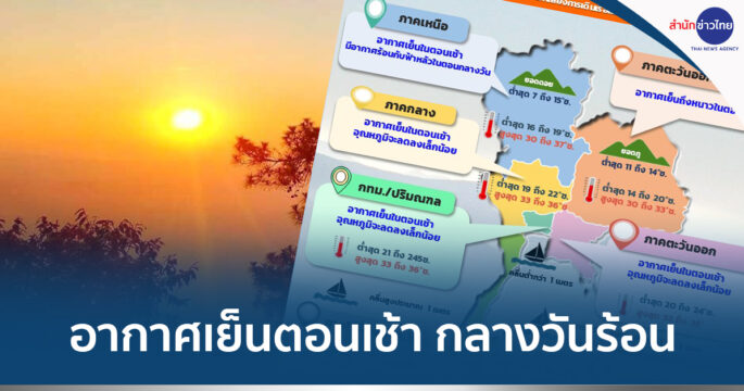 กรมอุตุฯ เผยภาคเหนือ ภาคอีสาน อากาศเย็นในตอนเช้า ไทยตอนบนอุณหภูมิสูงขึ้นกับมีหมอกตอนเช้า โดยมีอากาศร้อนในตอนกลางวัน ส่วนภาคใต้มีฝนเล็กน้อยบางพื้นที่