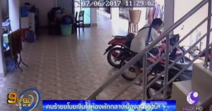 วงจรปิดจับภาพคนร้ายขโมยเงินในหอพักกลางเมืองอุดรฯ