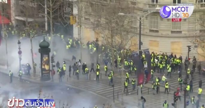 กลุ่มผู้ประท้วงนโยบายขึ้นภาษีน้ำมันเชื้อเพลิงของผู้นำฝรั่งเศส ออกมาชุมนุมประท้วงรัฐบาลเป็นสัปดาห์ที่ 5 แต่มีจำนวนน้อยกว่าทุกครั้งที่ผ่านมา