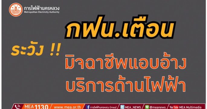 PEA เตือนระวังกลุ่มมิจฉาชีพ ส่งอีเมลให้ผู้ใช้ไฟฟ้าอัปเดตข้อมูลส่วนบุคคล