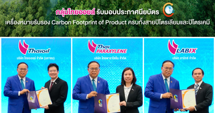 กลุ่มไทยออยล์รับเครื่องหมายรับรอง Carbon Footprint of Product ครบทั้งสาย