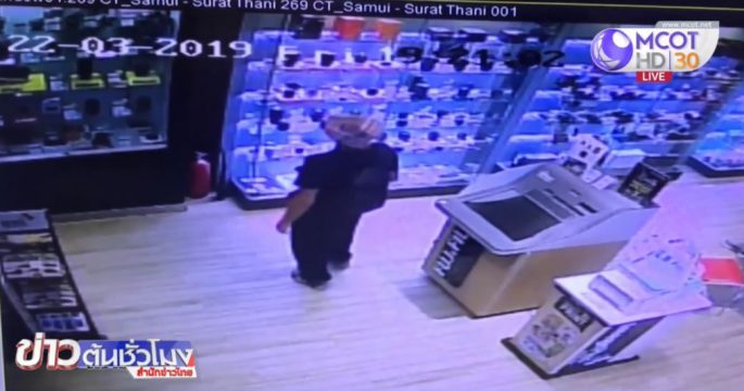 กล้องวงจรปิดชี้ชัดนักท่องเที่ยวชาวต่างชาติ ขโมยกล้องถ่ายรูปจากร้านค้าในห้างสรรพสินค้าสมุย