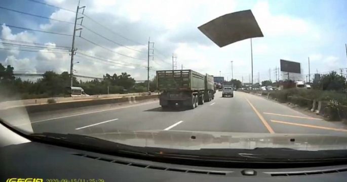 สมุทรสาคร 17 ก.ย.- นาทีชีวิต! กล้องหน้ารถจับภาพระทึกแผ่นเหล็กปลิวจากรถส่งน้ำดื่ม ปะทะหน้ารถกระบะเต็มแรงบนสะพานแม่น้ำท่าจีน ถนนพระราม 2 สมุทรสาคร คนขับปลอดภัยรีบประคองรถขับตามคู่กรณีจนทัน เรียกประกันเคลียร์ค่าเสียหาย นายสัมพัฒน์ ยงรู้รอบ อายุ 46 ปี เจ้าของรถกระบะ สีบรอนซ์ทอง ทะเบียน ตผ 3945 กรุงเทพมหานคร ที่ได้รับความเสียหาย นำคลิปจากกล้องหน้ารถ ซึ่งบันทึกเหตุการณ์ระทึกขณะขับรถข้ามสะพานแม่น้ำท่าจีน ถนนพระราม 2 สมุทรสาคร ฝั่งเข้า กทม. โดยแล่นตามรถบรรทุกเล็กส่งน้ำดื่ม ปรากฏว่าแผ่นเหล็กจากท้ายรถลอยละลิ่วปะทะใส่หน้ารถอย่างแรงจนกระจกแตก นายสัมพัฒน์ เล่าว่า เหตุเกิดช่วงเที่ยงวันที่ 16 ก.ย.ที่ผ่านมา หลังจากแผ่นเหล็กปะทะหน้ารถแล้วก็ยังไม่ร่วงและยังปิดหน้ารถด้วย มองไม่เห็น จึงพยายามตั้งสติค่อย ๆ ประคองรถไว้ได้อย่างปลอดภัย ส่วนคู่กรณีไม่ได้หยุดรถ จึงรีบขับตามไปจนถึงตลาดทะเลไทย และบอกให้จอดรถพร้อมเล่าเหตุการณ์ที่เกิดขึ้น แต่คนขับคู่กรณีอ้างว่าไม่รู้เรื่อง จึงเปิดกล้องหน้ารถให้ดู จากนั้นได้เรียกประกันมาตกลงค่าเสียหาย ส่วนแผ่นเหล็กดังกล่าวเป็นแผ่นใช้รองแพ็กน้ำดื่มและมีหมุดยึดติดกับคอกรถ คาดว่าหมุดคงชำรุด ทำให้แผ่นเหล็กหลุดออก.-สำนักข่าวไทย
