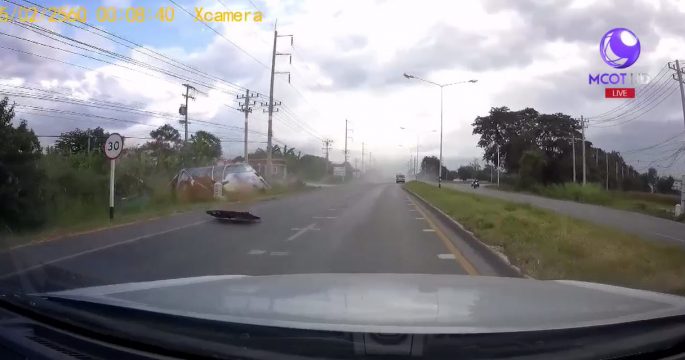 อุบัติเหตุรถพยาบาลขับชนชายสูงอายุและพระสงฆ์ที่ อ.แม่ทา จ.ลำพูน ซึ่งภาพจากกล้องหน้ารถทีมข่าวสำนักข่าวไทย อสมท สามารถบันทึกภาพไว้ได้ทั้งหมด