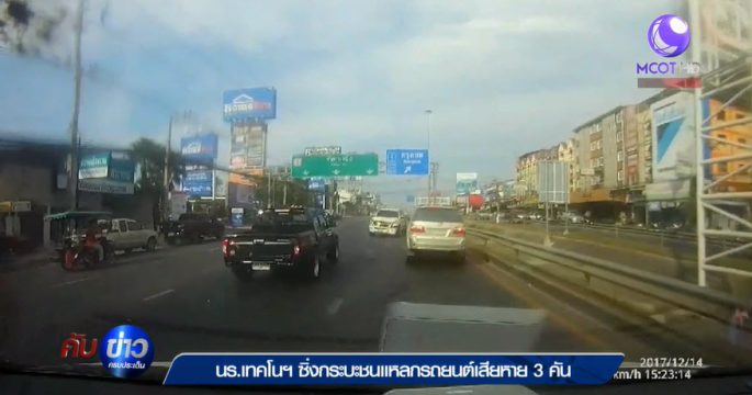 นร.เทคโนซิ่งกระบะชนแหลกรถยนต์เสียหาย 3 คัน