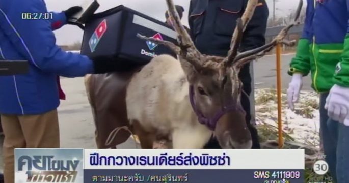 ผู้คนในญี่ปุ่นในพื้นที่ตอนเหนือของประเทศ อาจได้รับพิซซ่าที่บริการจัดส่งโดยกวางเรนเดียร์ หลังโดมิโน พิซซ่า วางแผนจะใช้กวางเรนเดียร์จัดส่งพิซซ่าในเขตที่มีหิมะตกหนักอย่างเกาะฮอกไกโด ช่วงคริสต์มาสนี้