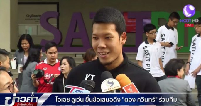 สโมสรโอเอช ลูเว่น ในลีกดิวิชั่น 2 ของเบลเยียม ยื่นข้อเสนอดึง “เจ้าตอง” กวินทร์ ธรรมสัจจานันท์ ผู้รักษาประตูทีมชาติไทย จากเอสซีจี เมืองทอง ยูไนเต็ด ไปร่วมทัพ
