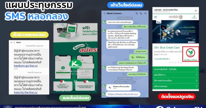 ตำรวจไซเบอร์ เตือนภัย SMS ธนาคารกสิกรไทยปลอมระบาด อ้างว่ามีบุคคลอื่นเข้าสู่ระบบจากอุปกรณ์อื่น พร้อมแนบลิงก์หลอกลวงให้ติดตั้งแอปฯ ควบคุมมือถือ