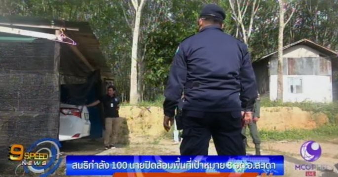 กองกำลังฝ่ายความมั่นคง 4 ฝ่าย สนธิกำลังกว่า 100 นาย เข้าปิดล้อมตรวจค้นพื้นที่เป้าหมาย 8 จุด ที่บ้านด่านนอก ตำบลสำนักขาม อำเภอสะเดา จังหวัดสงขลา