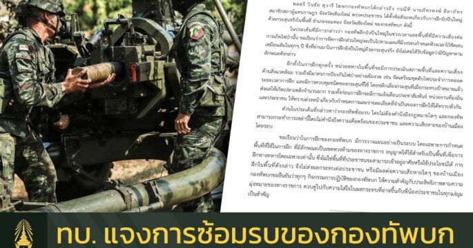 ทบ. แจงการซ้อมรบอยู่ในพื้นที่การฝึก-ไม่กระทบ ปชช.