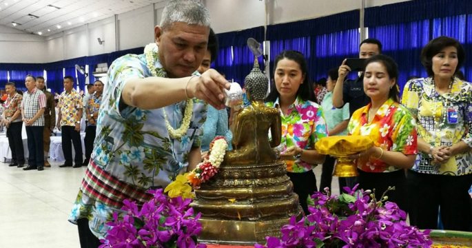 ผบ.ทอ.นำกำลังสวมเสื้อลายดอก ร่วมกิจกรรมสืบสานงานประเพณีสงกรานต์ 2561