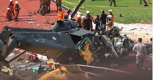 กองทัพเรือมาเลเซียกล่าวในแถลงการณ์ว่า เฮลิคอปเตอร์ของกองทัพเรือมาเลเซีย 2 ลำ ชนกันกลางอากาศในระหว่างการฝึกซ้อมสำหรับการแสดงในขบวนพาเหรดของกองทัพเรือ ทำให้มีผู้เสียชีวิต 10 ราย
