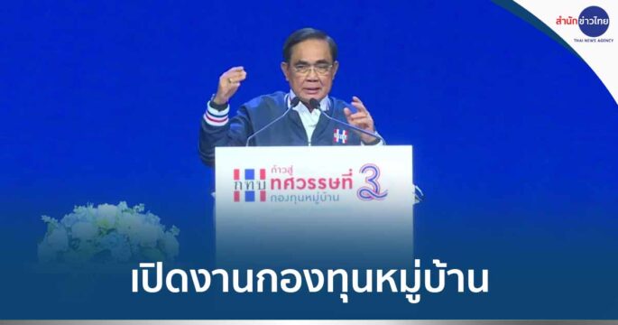 นายกฯ อารมณ์ดี เปิดงานกองทุนหมู่บ้าน ขอต่อยอด เพิ่มมูลค่า แก้หนี้ครัวเรือน บอกต้องรัก สามัคคี อย่าขัดแย้งกัน เลือดคนไทยไม่เคยยอมแพ้ใคร ต้องสู้ไปด้วยกันเพื่อลูกหลาน โพสต์ท่าถ่ายรูปกับชาวบ้าน ทำสัญลักษณ์ Y2K ตามเทรนด์