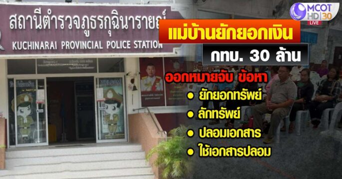 ตำรวจ สภ.กุฉินารายณ์ จ.กาฬสินธุ์ ออกหมายจับเจ้าหน้าที่ธนาคารชื่อดัง ทำหน้าที่แม่บ้านแอบยักยอกเงินของลูกค้า สมาชิก กทบ. เสียหายรวมเกือบ 30 ล้านบาท ก่อนหลบหนีลอยนวล ความคืบหน้าล่าสุดพบถูกกองทุนและบุคคลภายนอกแจ้งความร้องทุกข์ที่ สภ.กุฉินารายณ์ แล้ว 31 คดี