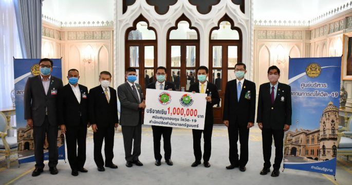 ทำเนียบฯ 3 เม.ย.- นายเทวัญ ลิปตพัลลภ รัฐมนตรีประจำสำนักนากยกรัฐมนตรี และนายธีรภัทร ประยูรสิทธิ ปลัดสำนักนายกรัฐมนตรี ในนามรัฐบาลรับมอบเงินบริจาคจากสมาคมกอล์ฟมิตรภาพไทย-เอเชีย สนับสนุนเข้ากองทุนโควิด-19 สำนักปลัดสำนักนายกรัฐมนตรี โดยนายนภินทร ศรีสรรพางค์ นายกสมาคม นายสุภรณ์ อัตถาวงศ์ (แรมโบ้) เลขาธิการสมาคม นายอนันต์ วรธิติพงศ์ นายทะเบียนสมาคม ได้นำเงินมามอบในนามสมาคมฯ จำนวน 1,000,000 บาท เพื่อสนับสนุนการแก้ไขปัญหาโรคติดเชื้อไวรัสโคโรนา 2019 (COVID-19) พร้อมมอบเครื่องดื่มบำรุงร่างกาย 20 ลัง เพื่อเป็นขวัญกำลังใจให้กับเจ้าหน้าที่คณะทำงานศูนย์บริหารสถานการณ์การแพร่ระบาดของโรคติดเชื้อไวรัสโคโรนา 2019 (โควิด19) หรือ ศบค. ที่ทุ่มเททำงานอย่างเต็มที่ ทั้งนี้ ปลัดสำนักสำนักนายกรัฐมนตรีได้มอบเครื่องดื่มบำรุงร่างกายให้ พล.ต.ท.ปิยะ อุทาโย โฆษกสำนักงานตำรวจแห่งชาติ เพื่อนำไปแจกจ่ายให้แก่เจ้าหน้าที่ผู้ปฏิบัติงานในพื้นที่ต่อไป.- สำนักข่าวไทย