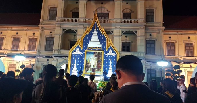 ประชาชนมาร่วมวางดอกไม้จันทน์ ภายในกองบัญชาการกองทัพบก ขณะนี้แถวยังสามารถเคลื่อนไปได้เรื่อยๆ โดยมีเจ้าหน้าที่คอยอำนวยความสะดวก