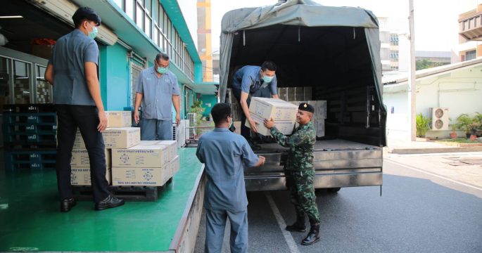 กองบัญชาการกองทัพไทยจัดยานพาหนะพร้อมพลขับสนับสนุนการขนส่งหน้ากากอนามัย