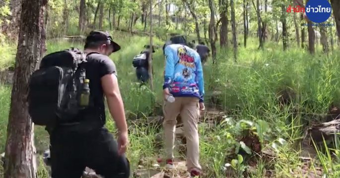 ตำรวจชุดสืบสวนตำรวจภูธรกกตูม จ.มุกดาหาร ตำรวจกองปราบปราม และตำรวจสืบสวนสอบสวนภูธรภาค 4 เดินเท้าขึ้นภูเหล็กไฟ จุดพบศพ “น้องชมพู่” เพื่อหาหลักฐาน