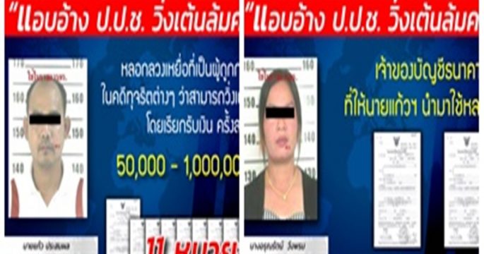 จับแอบอ้างเป็นป.ป.ช.ช่วยวิ่งเต้นล้มคดี ผู้เสียหายหลงเชื่อกว่า 20 คน สูญกว่า 8 ล้านบาท