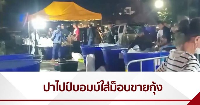 ระทึกก่อนเคาท์ดาวน์ปีใหม่ คนร้ายปาไปป์บอมบ์ ใส่กลุ่มการ์ดวีโว่ ที่มาจัดกิจกรรมขายกุ้งของเกษตรกร หน้ากองสลากเก่า บาดเจ็บ 4 คน เจ้าหน้าที่อยู่ระหว่างเก็บพยานหลักฐานต่างๆ ไปตรวจสอบเพิ่มเติม
