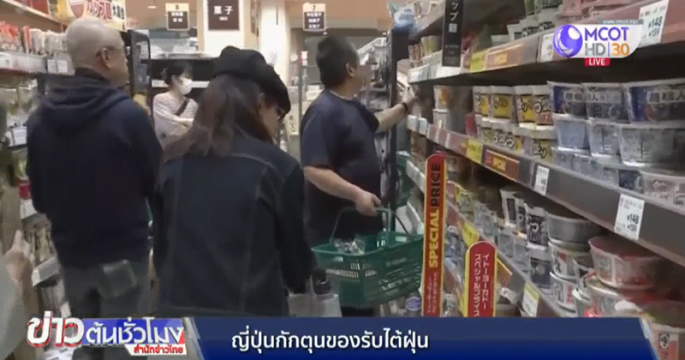 ร้านค้าและซูเปอร์มาร์เก็ตหลายแห่งในกรุงโตเกียวของญี่ปุ่น เนืองแน่นไปด้วยลูกค้าที่มาซื้ออาหารและน้ำดื่ม เตรียมรับมือไต้ฝุ่นฮากิบิสจ่อพัดถล่มญี่ปุ่น