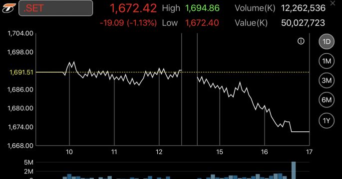 หุ้นไทยร่วง 15 จุด กังวลสงครามการค้า-ประท้วงฮ่องกง
