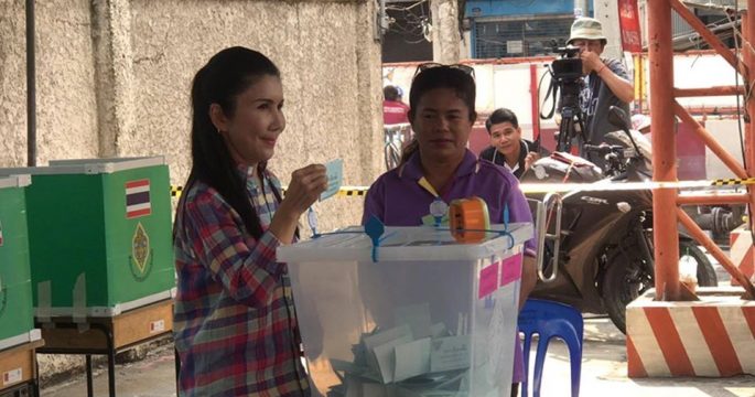 “กัญจนา” ควง บุตรสาวบุญธรรม ใช้สิทธิ์เลือกตั้งแล้ว