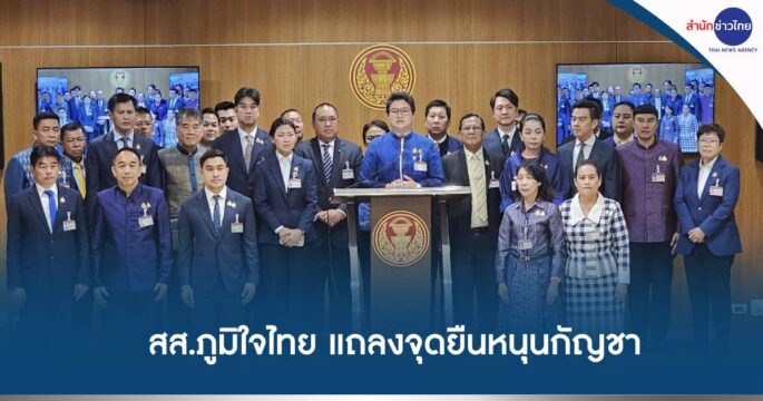 สส.ภูมิใจไทย ยกแก๊ง แถลงจุดยืนหนุนกัญชาเป็นพืชทางการแพทย์-สุขภาพ และขับเคลื่อนเศรษฐกิจ ลั่นมีมารยาทพอ ไม่ทะเลาะกับใคร ยังทำงานกับพรรคร่วมรัฐบาลได้ หลังมีแนวคิดดันกลับเป็นยาเสพติด ขณะที่เร่งผลักดันร่าง พ.ร.บ.ควบคุมกัญชาให้สำเร็จ