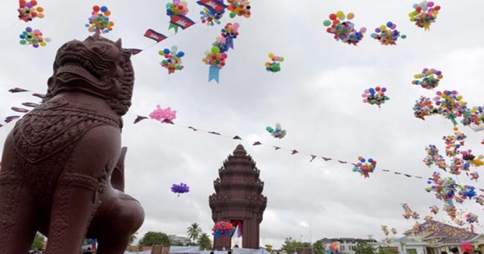 ชาวกัมพูชาฉลองครบรอบ 64 ปีการประกาศเอกราชจากฝรั่งเศส โดยมีพิธีจัดขึ้นที่อนุสาวรีย์เอกราชในกรุงพนมเปญในวันนี้