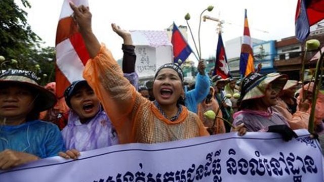 ผู้ประท้วงเรียกร้องสิทธิในที่ดินทำกินปะทะกับหน่วยรักษาความปลอดภัยท้องถิ่นในวันนี้ ขณะกลุ่มผู้ประท้วงในกรุงพนมเปญเรียกร้องให้รัฐบาลยกเลิกการบังคับเวนคืนที่ดิน