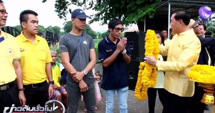 จ.กาญจนบุรี จัดกิจกรรมต้อนรับนักดำน้ำจากเขื่อนวชิราลงกรณ และนักดำน้ำเอกชน ที่กลับจากปฏิบัติภารกิจช่วยเหลือ 13 ชีวิตติดถ้ำหลวง อย่างอบอุ่น