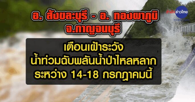 จ.กาญจนบุรี ออกประกาศเตือนภัย 2 อำเภอ เฝ้าระวังน้ำท่วมฉับพลัน น้ำป่าไหลหลาก วันที่ 14-18 ก.ค.67