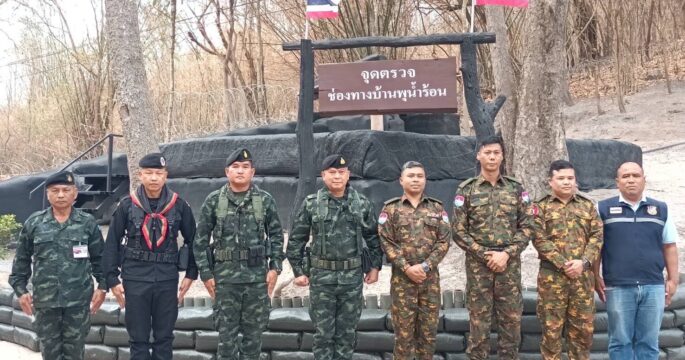 ผบ.ฉก.ลาดหญ้า – ทหารเมียนมา ประสานความร่วมมือ แก้ไขปัญหาแก๊งคอลเซ็นเตอร์ พร้อมมอบกำลังใจทหารชายแดนกาญจนบุรี ตรึงชายแดนตลอด 24 ชม.