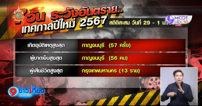 กาญจนบุรีเกิดอุบัติเหตุสะสมสูงสุด 4 วัน หยุดปีใหม่ 67