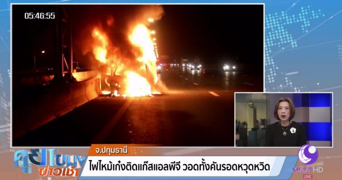 ไฟไหม้รถเก๋งติดแก๊สแอลพีจีบนถนนกาญจนาภิเษกเสียหายทั้งคัน คนขับและเพื่อนหนีออกมาได้ทันรอดหวุดหวิด