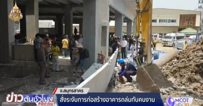 เทศบาลนครอ้อมน้อย พร้อมวิศวกร สั่งระงับการก่อสร้างอาคารจอดรถพังถล่มทับคนงานเสียชีวิต 1 คน และบาดเจ็บอีก 2 คน