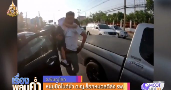 โซเชียลชื่นชม! หนุ่มบิ๊กไบค์อาสาพาเด็กหญิงช็อกหมดสติส่งโรงพยาบาล ขณะการจราจรติดขัดกลางเมืองพิษณุโลก