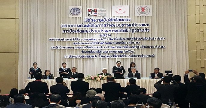แจ้งวัฒนะ 13 ก.ค.-ป.ป.ท.ร่วมรัฐวิสาหกิจ เซ็น MOU ปราบปรามป้องกันการทุจริต นายสุวพันธุ์ ตันยุวรรธนะ รัฐมนตรีว่าการกระทรวงยุติธรรม ในฐานะประธานกรรมการอำนวยการต่อต้านการทุจริตแห่งชาติ(ศอตช.) เป็นประธานในพิธีลงนามบันทึกข้อตกลง MOU และแผนปฏิบัติการร่วมว่าด้วยความร่วมมือในการสร้างระบบธรรมาภิบาล และการป้องกันและปราบปรามการทุจริตในรัฐวิสาหกิจ โดยมีสำนักงานคณะกรรมการป้องกันและปราบปรามการทุจริตในภาครัฐ (ป.ป.ท.) ร่วมกับองค์กรต่อต้านคอร์รัปชั่น(ประเทศไทย) หรือ ACT ,สมาพันธ์แรงงานรัฐวิสาหกิจสัมพันธ์(สรส.),สมาพันธ์แรงงานรัฐวิสาหกิจสัมพันธ์ และ สหพันธ์แรงงานรัฐวิสาหกิจแห่งประเทศไทย(สพร.ส.) การลงนามบันทึกข้อตกลงครั้งนี้ มีวัตถุประสงค์เพื่อต้องการส่งเสริมความร่วมมือในการสร้างระบบธรรมาภิบาลและการป้องกันและปราบปรามการทุจริต ซึ่งปัญหาการทุจริตส่วนใหญ่พบว่าส่วนหนึ่งเป็นการกระทำความผิดโดยกลุ่มเจ้าหน้าที่ของรัฐที่ไม่ยึดหลักธรรมาภิบาลในการปฏิบัติหน้าที่ ทำให้เกิดปัญหาการทุจริตเป็นวงกว้าง จำเป็นต้องสร้างความร่วมมือในการสร้างระบบธรรมาภิบาล โดยการบูรณาการทั้ง 4 หน่วยงานใน 3 ระดับ คือ ระดับส่วนกลาง ระดับจังหวัดหรือภูมิภาค และระดับพื้นที่ เพื่อให้การป้องกันและปราบปรามการทุจริตมีประสิทธิภาพตามยุทธศาสตร์ชาติและส่งผลต่อการลดปัญหาการทุจริตของประเทศได้ นายสุวพันธุ์ กล่าวในการปาฐกถาพิเศษตอนหนึ่งบนเวที ว่า รัฐบาลมีนโยบายที่ให้การต่อต้านการทุจริตเป็นวาระสำคัญของชาติและมีการตั้ง ศอตช.ขึ้นมา เพื่อต้องการทำให้ประเทศไทยเป็นประเทศที่ปลอดจากการทุจริตประพฤติมิชอบ เป็นสังคมที่มีคุณธรรม จริยธรรม และสิ่งที่รัฐบาลพยายามปลูกฝังคือการสร้างระบบคุณธรรมจริยธรรมให้เกิดขึ้น ดีใจที่ได้รัฐวิสาหกิจมาเป็นภาคีเครือข่าย ส่วนตัวเห็นว่าเรื่องของการต่อต้านการทุจริตประพฤติมิชอบ เรื่องของการทำให้สังคมและประเทศสะอาด ต้องเกิดขึ้นจากความคิดของคนในสังคม เริ่มจากพ่อแม่ลูกต้องปลูกฝังเป็นตัวอย่างให้แก่กันและกัน โตขึ้นมาทำงานแล้วหน่วยงานราชการ หน่วยงานเอกชน รัฐวิสาหกิจ ภาคประชาสังคม […]