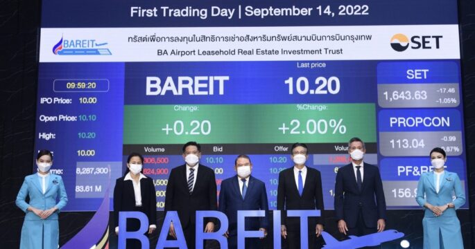 BAREIT เปิดเทรดวันแรก 10.10 บาท เพิ่มขึ้น 1 %