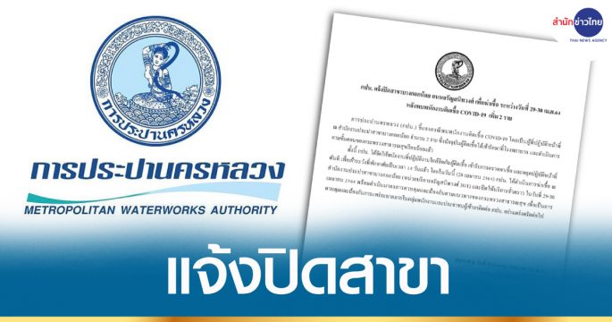 กปน.แจ้งปิดสาขาบางกอกน้อย ถ.จรัญสนิทวงศ์ เพื่อฆ่าเชื้อ ระหว่างวันที่ 29-30 เม.ย.64 หลังพบพนักงานติดเชื้อโควิด-19 เพิ่ม 2 ราย