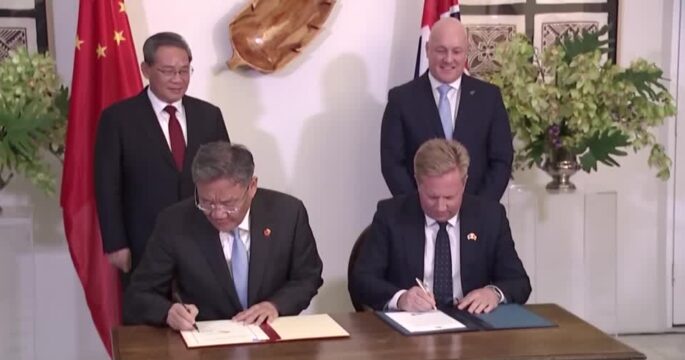 จีนและนิวซีแลนด์ลงนามในข้อตกลงหลายฉบับทั้งเรื่องการค้าและการเปลี่ยนแปลงสภาพภูมิอากาศ ในระหว่างที่นายกรัฐมนตรีหลี่ เฉียง เดินทางเยือนนิวซีแลนด์ ซึ่งเป็นเจ้าหน้าที่จีนระดับสูงที่สุดที่มาเยือนนิวซีแลนด์ในรอบ 7 ปี