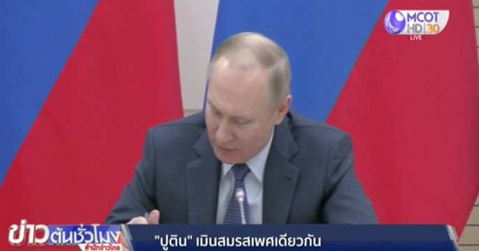 “ปูติน” เมินกฎหมายสมรสเพศเดียวกัน 14/02/2563 08:27 FacebookFacebookXTwitterLINELine 17 ประธานาธิบดีวลาดิเมียร์ ปูติน ยืนยันจะไม่ยอมให้การสมรสเพศเดียวกันในรัสเซียเป็นสิ่งที่ถูกต้องตามกฎหมาย