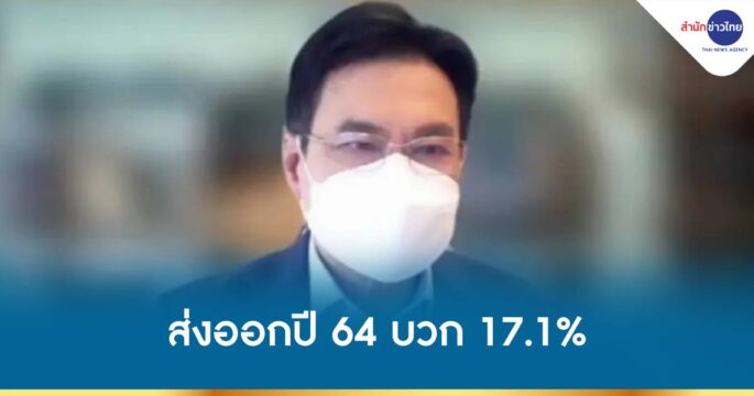 รัฐมนตรีพาณิชย์ปลื้มยอดตัวเลขส่งออกตลอดปี 64 เป็นบวกร้อยละ 17.1 แม้เจอพิษโควิดหลายพันธุ์ระบาด ลุ้นปี 65 ที่ตั้งเป้ายอดส่งออกเป็นบวกร้อยละ 3-4 โดยเชื่อพิษโควิดจะน้อยลง เงินบาทเอื่อดันส่งออกยังเติบโตได้ดี