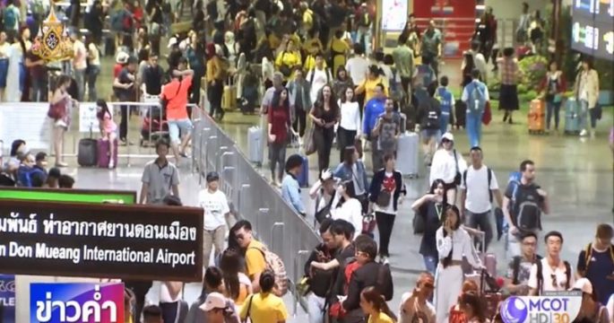 บรรยากาศการเดินทางที่สนามบินดอนเมืองคึกคัก นักท่องเที่ยวทั้งไทยและต่างชาติเดินทางเที่ยวช่วงสงกรานต์จำนวนมากจนแน่นสนามบิน