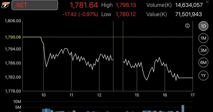 หุ้นไทยลดลง 17.42 จุด ทิศทางเดียวกับตลาดหุ้นทั่วโลก กังวลการเมืองสหรัฐ ลุ้น สนช.ผ่านร่างกฎหมายเลือกตั้งพรุ่งนี้