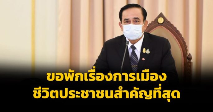 นายกฯ ย้ำชีวิตประชาชน-บุคลากรทางการแพทย์สำคัญที่สุดเวลานี้ ขอให้พักเรื่องการเมืองไว้ก่อนเพราะบ้านเมืองกำลังมีปัญหา วิกฤติโควิด-19 เป็นภัยของมนุษยชาติระดับโลก ไม่ใช่เหตุที่จะทำรัฐประหารซ้ำ