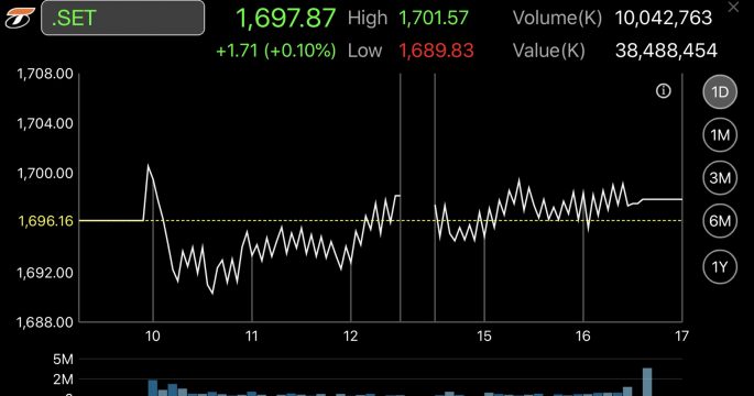 หุ้นไทยแกว่งตัวเพิ่มขึ้น 1.71 จุด หลายปัจจัยกดดัน ทั้งสงครามการค้าและความตึงเครียดระหว่างสหรัฐ – ซาอุฯ