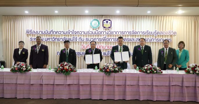 ธ.ก.ส. จับมือ ม.แม่โจ้ ส่งเสริมการจัดการเรียนรู้ตลอดชีวิต เพื่อให้เกิดการพัฒนาตนเองอย่างต่อเนื่องแก่ทั้งบุคลากรของ ธ.ก.ส และ ม.แม่โจ้ ตลอดจนเกษตรกรลูกค้าและผู้ที่เกี่ยวข้อง