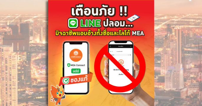 MEA เตือนภัย! LINE ปลอม…มิจฉาชีพแอบอ้างทั้งชื่อและโลโก้ MEA